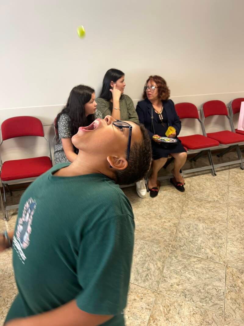 We volunteered to organize a "Noite de Jogos" (Game Night) in Barcelos. It was super fun! Here, we are playing Gorilla Basketball, where each team passes back tennis balls tot he person at the end of the line, who attempts to throw the ball into a basket in the front of the room. Balls are flying everywhere!