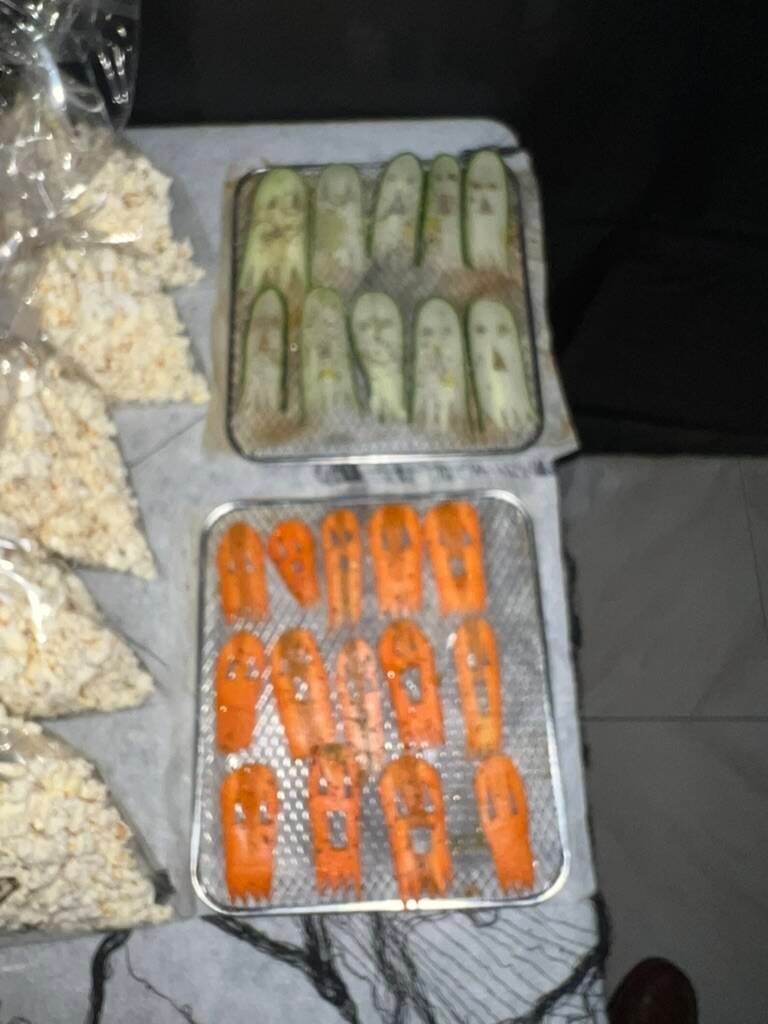 Because Luca and Mayara know I love vegetables, they prepared "ghost" cucumbers and carrots especially for me!